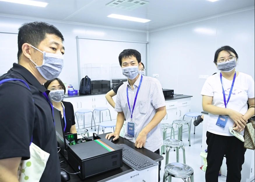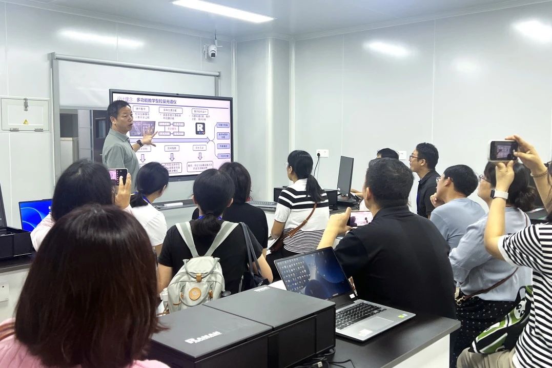 化學“101計劃”化學測量學實驗課程牽頭專家、廈門大學化學化工學院院長任斌教授對教學型多功能拉曼光譜儀進行講解演示